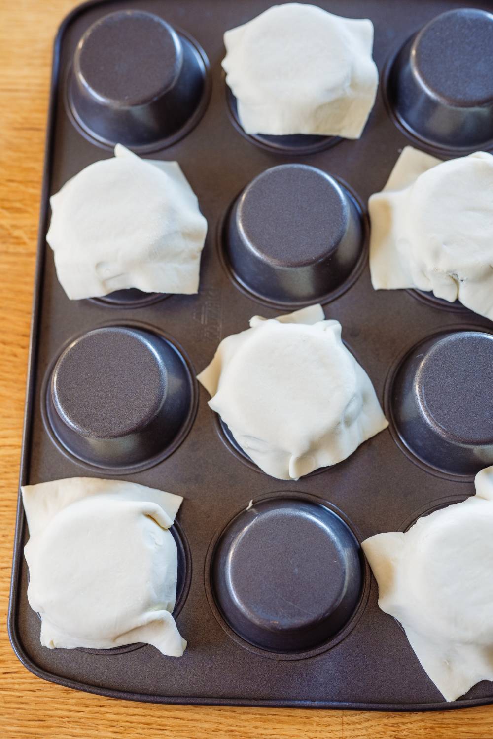 - Über umgedrehte Muffinform legen. Mit Parmesan bestreuen.