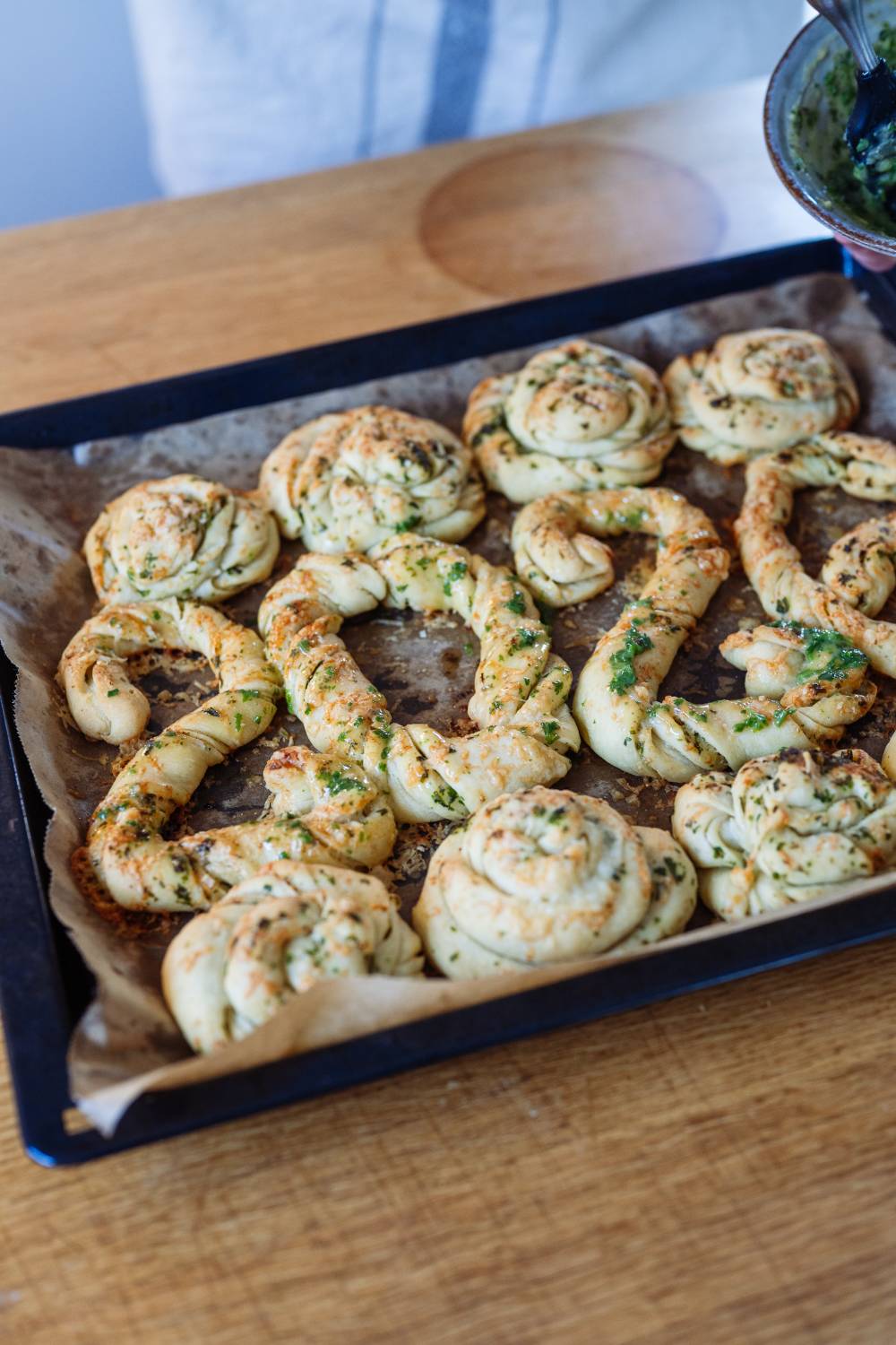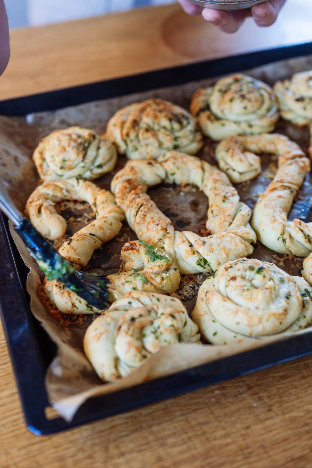 - Mit etwas Kräuterbutter nach dem Backen streichen