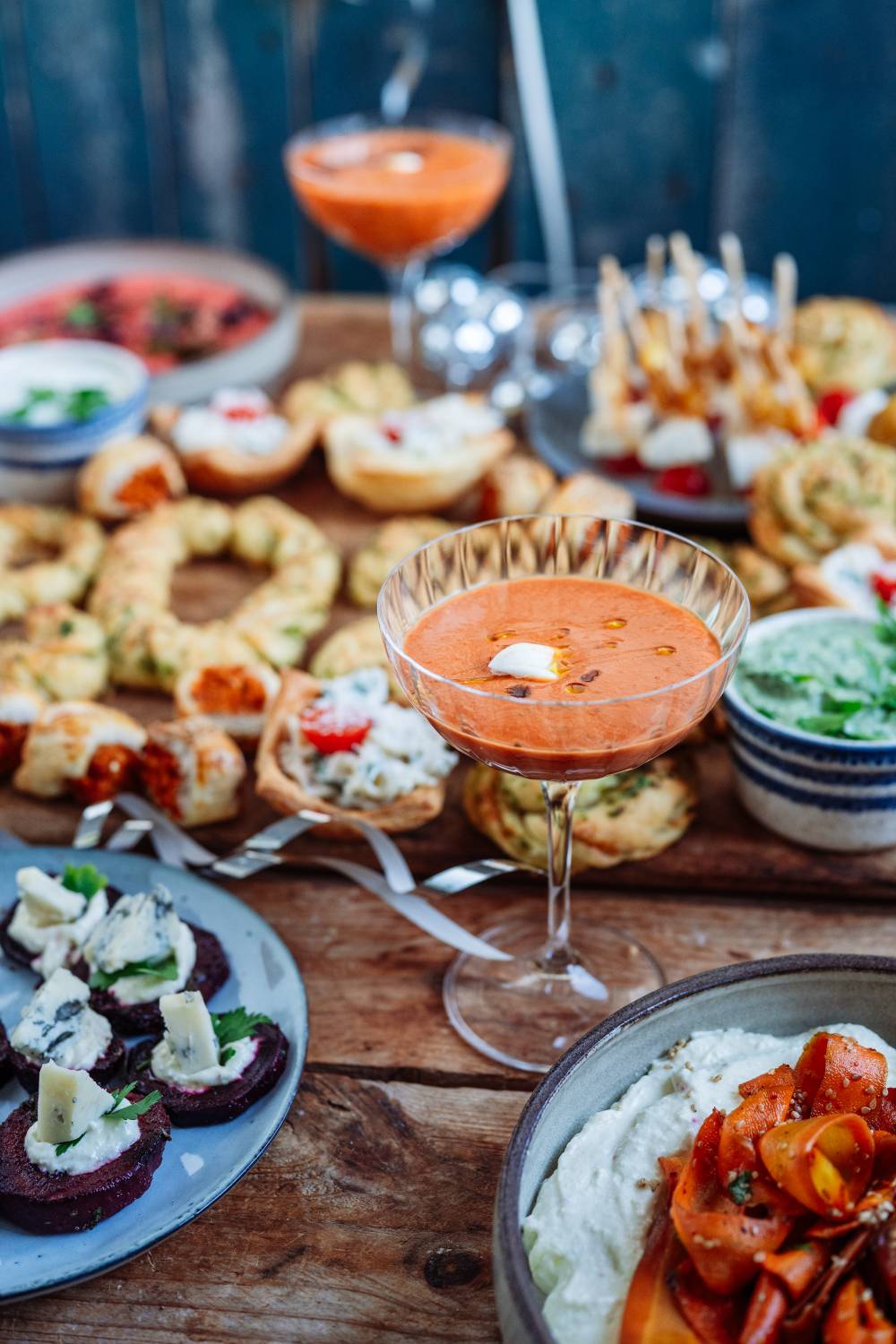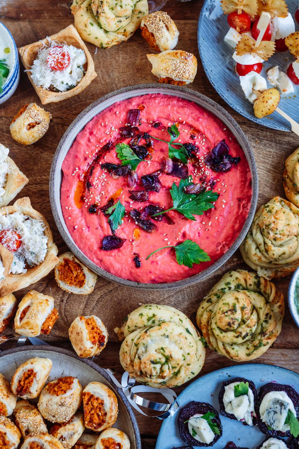Rote Beete Hummus und Häppchen