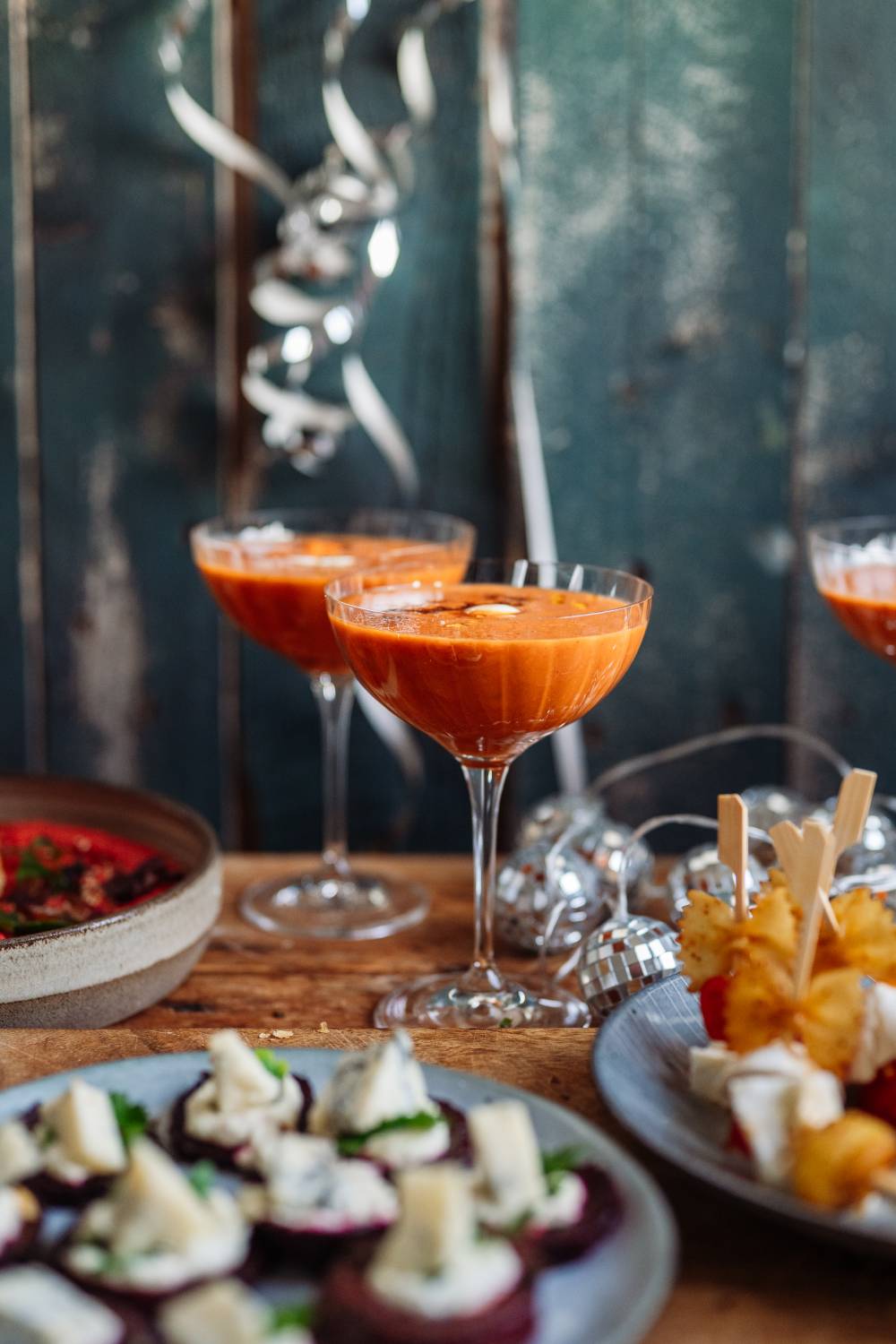 Spicy Tomatensuppe und Tomate-Mozzarella-Gnocchi-Spieße