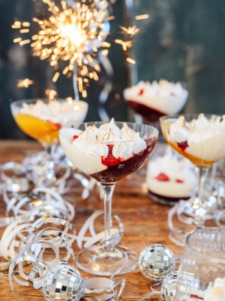 Baiser-Bäumchen mit Vanille-Quark-Creme und Beeren